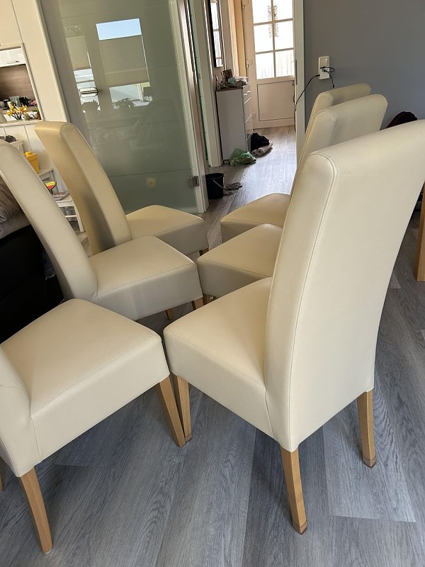 6 Esszimmer Stühle zu verkaufen. Die Stühle sind sehr gut erhalten und makellos. Oberfläche ist Kunstleder.