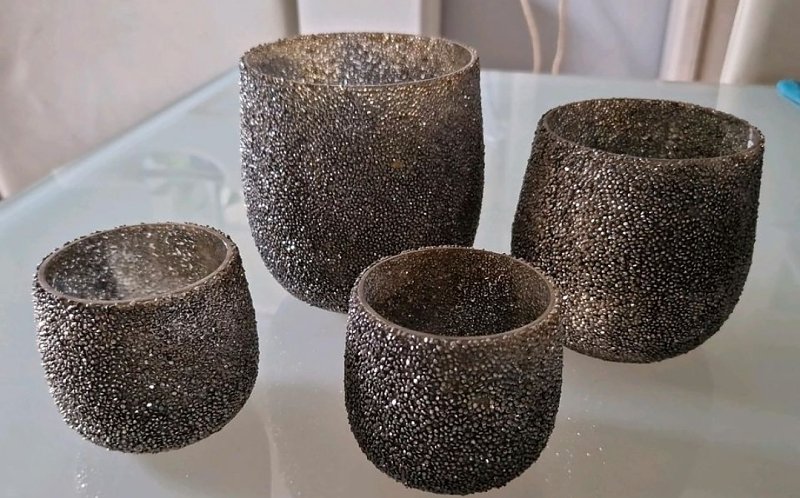 Windlicht Teelicht Set 4 teilig grau Silber 12cm, 10cm, 8cm