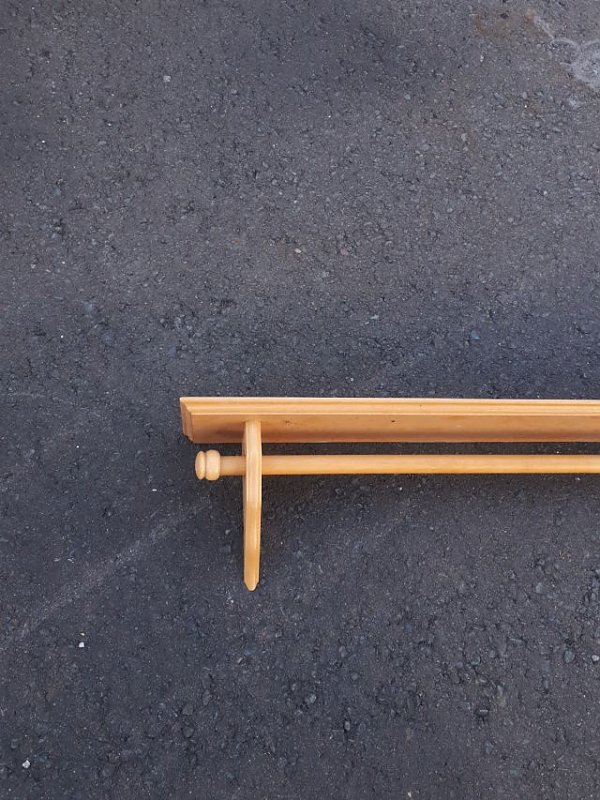 Verkaufe rustikale Gardinenstange Holz mit Holzringen und Gardinenhaltern , Brettlänge 180 cm , Innenmass zwischen den Haltern 1,58 m