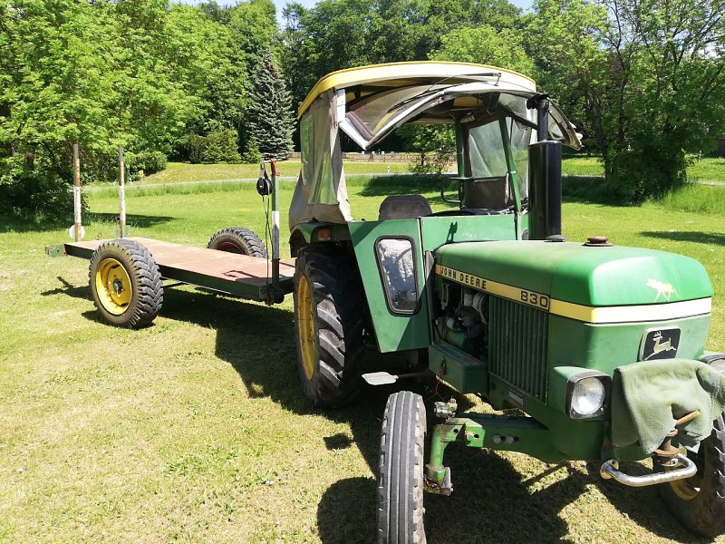 John Derre 830 mit Anhänger  (Foto: ) Wir verkaufen schwären Herzen unseren geliebten Johni mit Anhänger. Der Johni hat 35 PS ist Wassergekühlt mit Hydraulikanlage. Der Anhänger verfügt über eine seberate Bremse für sehr starke Bergabfahrten es können ohne Probleme 4.5 Meter Holz geladen werden. Der Johni sowie Anhänger sind zugelassen und haben TÜV. Bei weiteren Fragen stehe ich Ihnen gerne zur Verfügung 01608366857. Der Preis 7500V.B