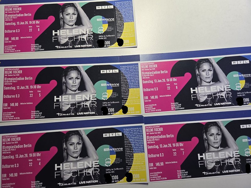 Biete: Helene Fischer Tickets Berlin 13.06. – 5 Plätze Ostkurve (Top Sicht!)