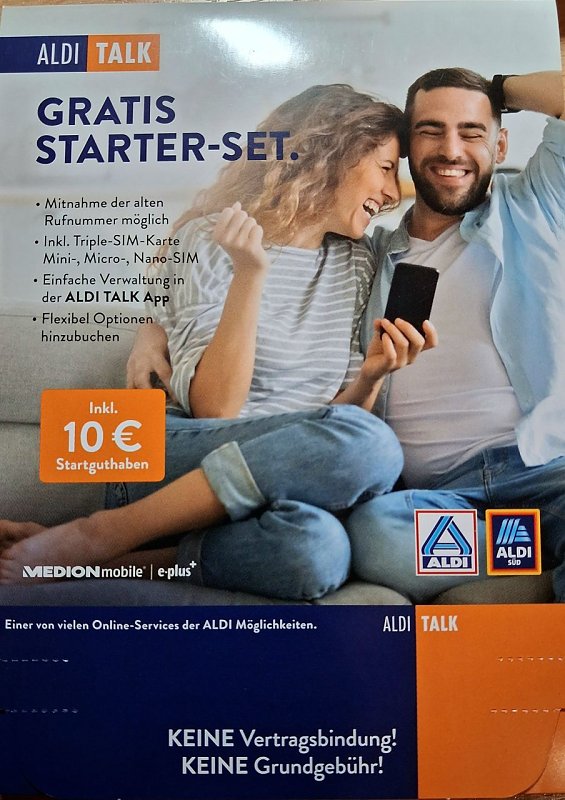 Karton, Ladekabel und unbenutztes ALDI Starter-Set