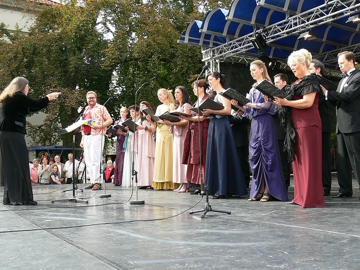 Auf dem Theaterplatz findet ein großes zweiteiliges Bühnenprogramm statt. Nach der Eröffnung durch Intendant Lars Tietje treten Sängerinnen und Sänger, am Klavier begleitet von Margherita Colombo, die Ballettkompanie und der Junge Zirkus Zappelini auf. Ab 17 Uhr ist das Loh-Orchester Sondershausen dann mit Highlights aus Oper und Operette mit von der Partie.