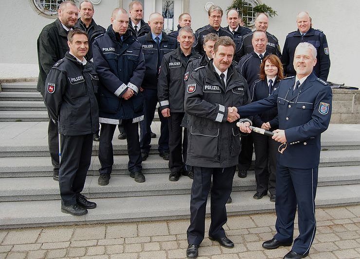 Polizeihauptkommissar Frank Stecher (rechts im Bild) übergab die Aktion symbolisch an Polizeihauptkommissar Peter Schliep aus der Polizeiinspektion Northeim/Osterode.