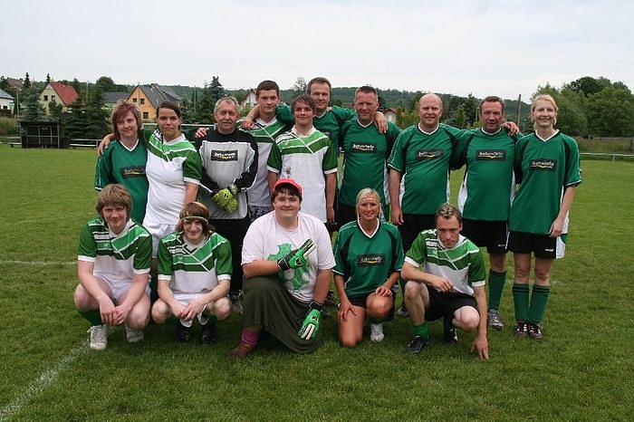 Wie in jedem Turnier wurde auch der Torschützenkönig ermittelt: Stefan Neubert (vorn) Holzsußra mit 9 Toren. Nicht nur die Sieger strahlten, sondern auch das Wetter hatte gut mitgespielt.