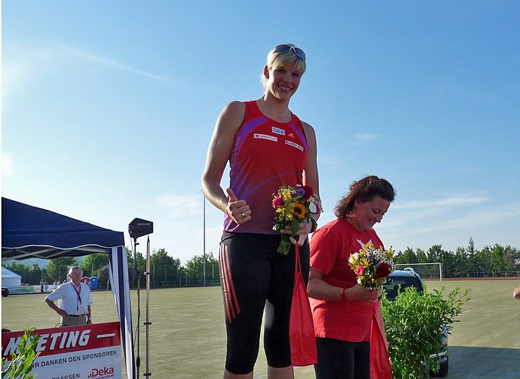 Gleich das Diskuswerfen begann mit einem Paukenschlag. Mehrfach übertraf Nadine Müller den Stadionrekord von Franka Dietzsch (63,19 m) und schraubte ihn auf 64,17 m.