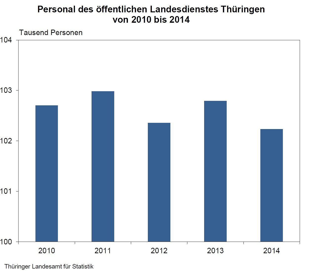 Wie das Thüringer Landesamt für Statistik mitteilt, waren Mitte vergangenen Jahres im öffentlichen Dienst in Thüringen insgesamt 102 235 Personen beschäftigt. Das sind 0,5 Prozent bzw. 560 Beschäftigte weniger als noch im Vorjahreszeitraum und der niedrigste Stand der Beschäftigtenzahlen seit fünf Jahren.