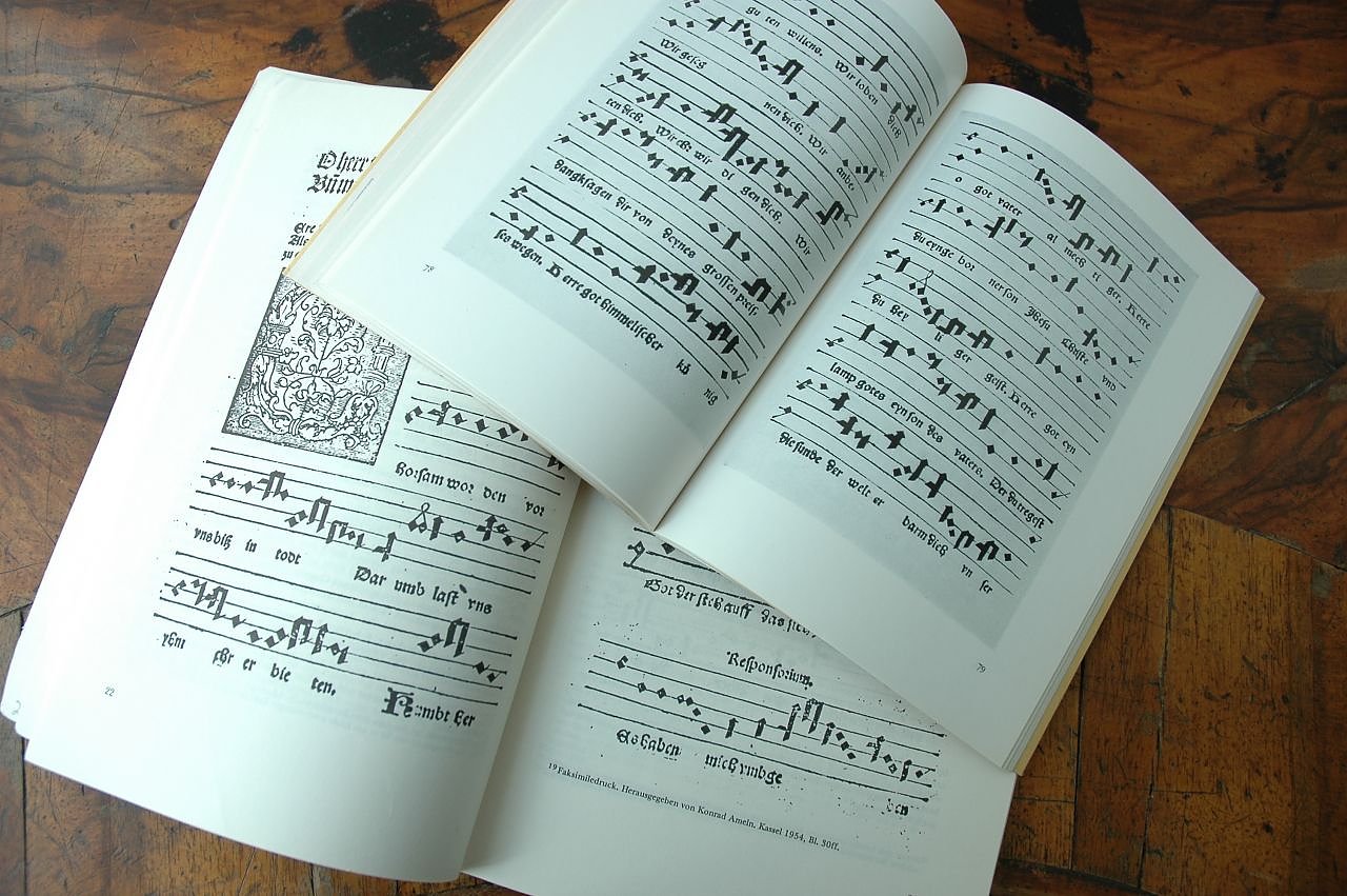 Abbildungen von Notenblättern aus der Deutschen Evangelischen Messe Thomas Müntzers, 1524. (Foto: Foto: Faksimile aus: Siegfried Bräuer [Hrsg.]: Thomas Müntzer – Deutsche Evangelische Messe und Karl Honemeyer: Thomas Müntzer und Martin Luther. )