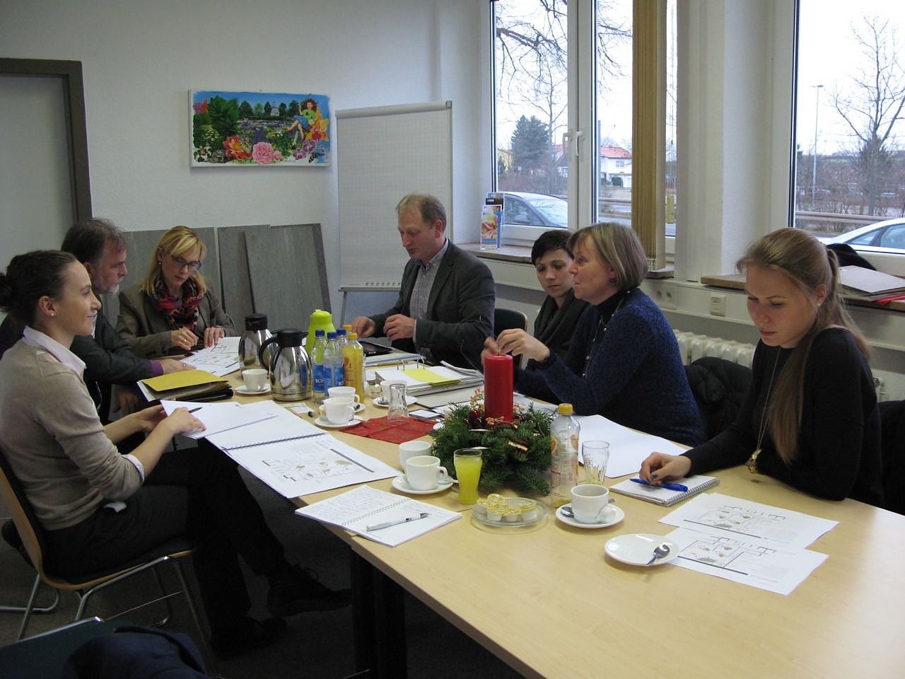 Die Projektgruppe kam am Mittwoch erneut in Erfurt mit Kathrin Weiß, Geschäftsführerin der Erfurter Garten- und Ausstellungs GmbH (3. von links) und ihrer Mitarbeiterin, Sylvie Eichler (1. v. links), zusammen. (Foto: Foto: Landratsamt)