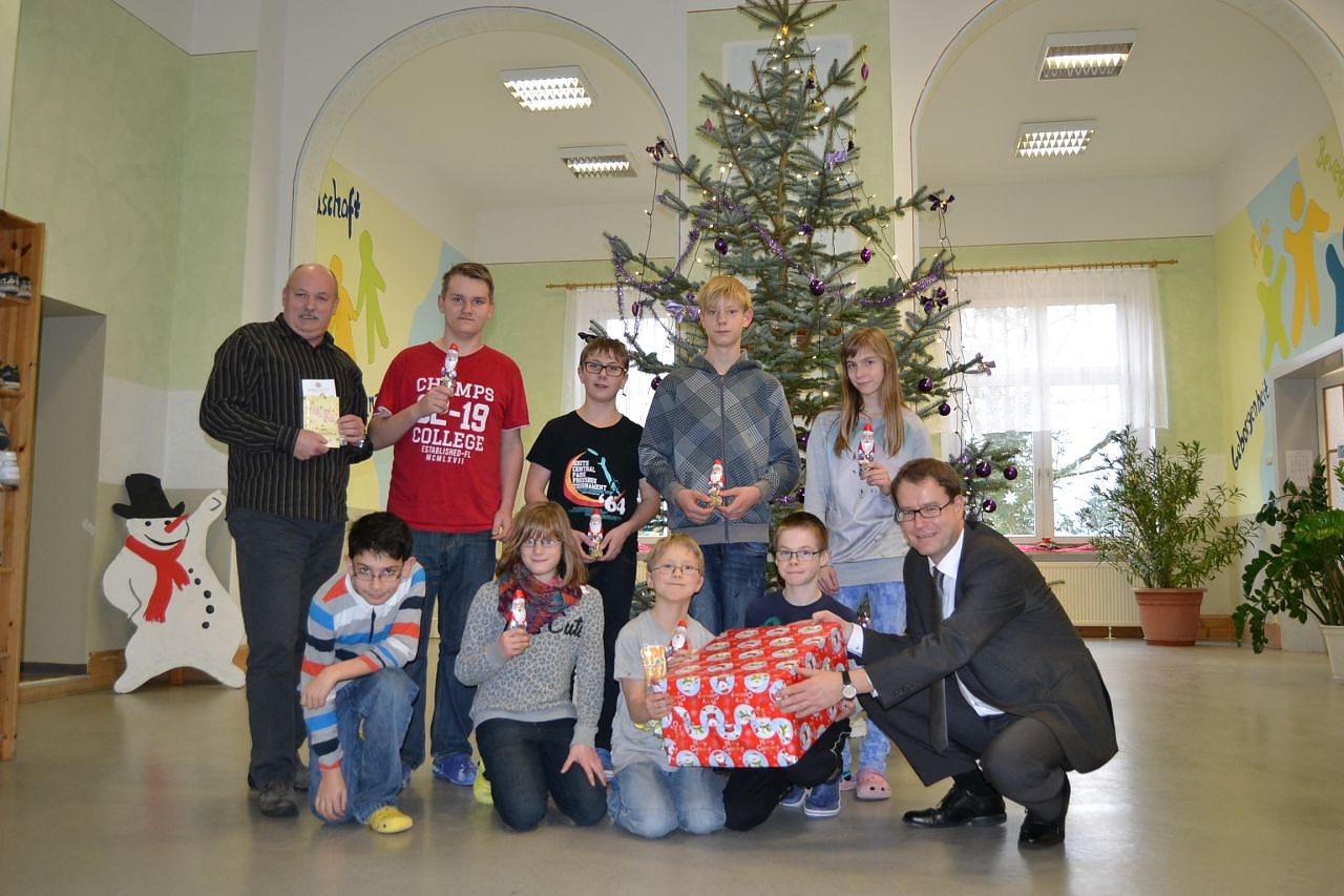 Stellvertretend für die Mitarbeiter der Stadtverwaltung übergab Mühlhausens Oberbürgermeister Johannes Bruns am Donnerstag (17.12.2015) eine kleine Weihnachtsüberraschungen an das Kinder- und Jugendhauses "Am Stadtwald" des Priorats.