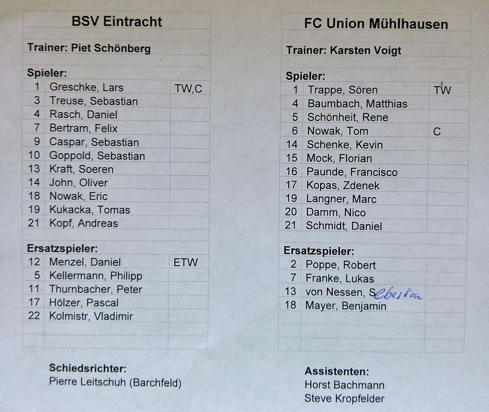BSV Eintracht Sondershausen - FC Union Mühlhausen.