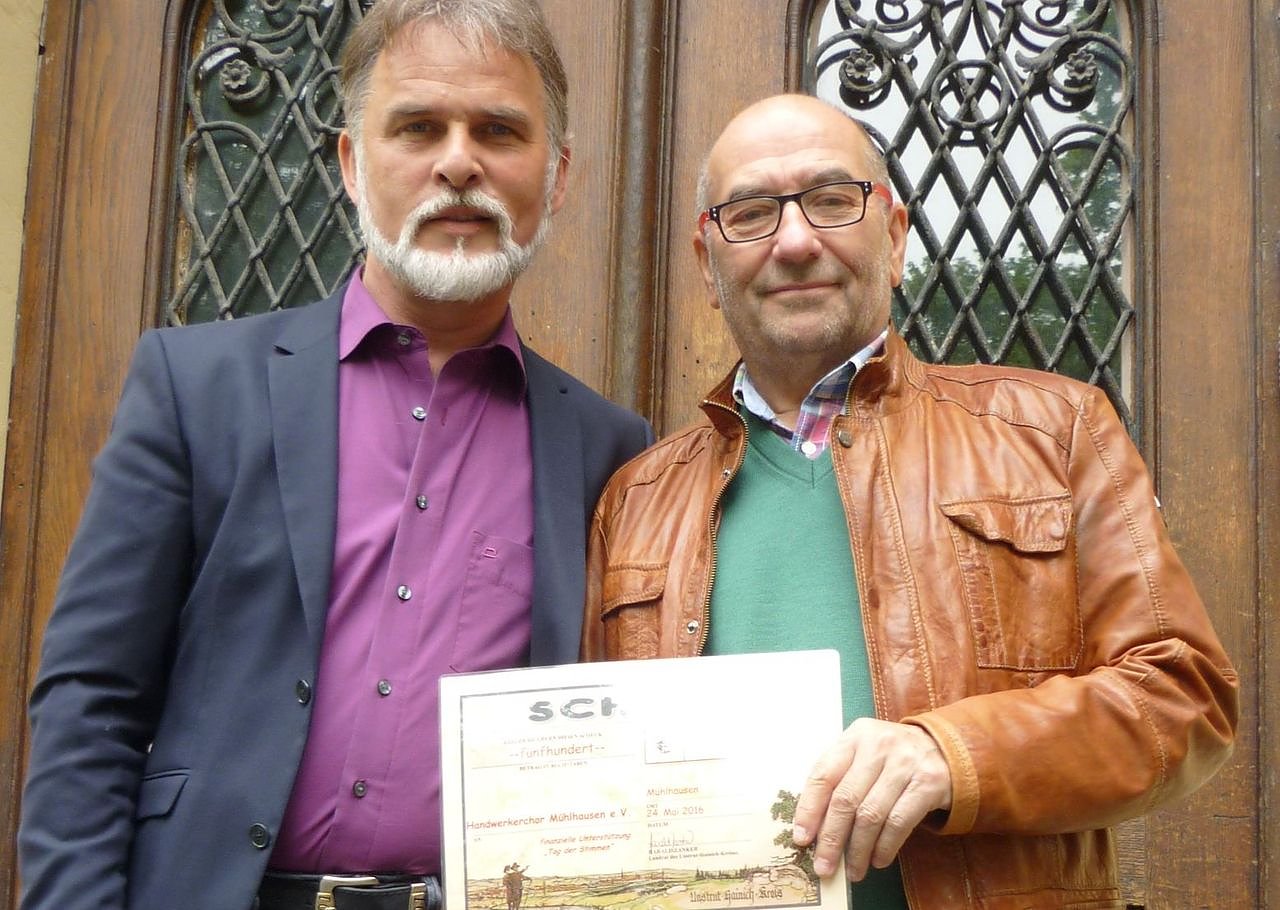 Für die Organisation der Veranstaltung erhielt der Kreischorverband Unstrut-Hainich jetzt eine finanzielle Zuwendung in Höhe von 500 Euro aus dem Spendenfonds der Kreisverwaltung. Landrat Harald Zanker übergab die Spende an dessen Vorsitzenden Klaus Kubelka.