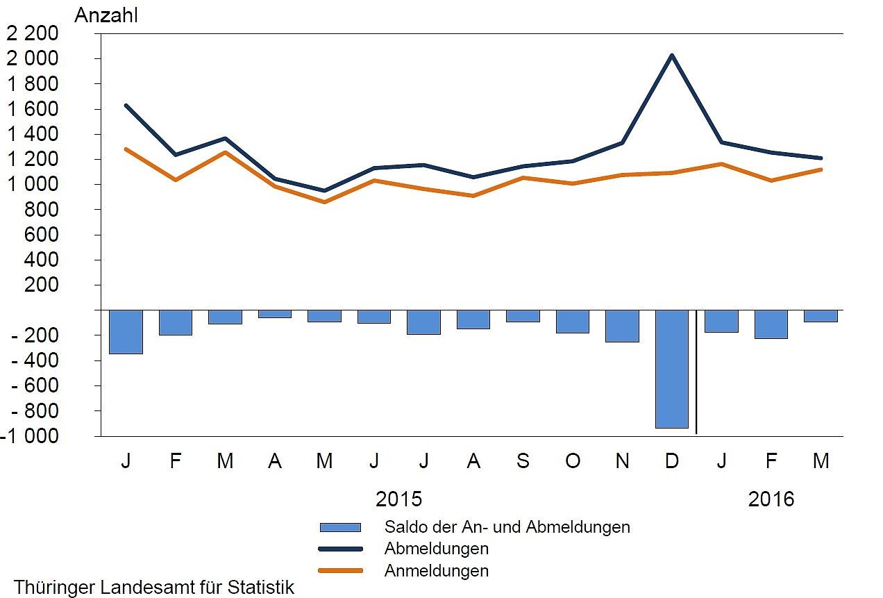 In Thüringen gab es von Januar bis März 2016 gegenüber dem entsprechenden Vorjahreszeitraum sowohl weniger Gewerbeanmeldungen als auch weniger Gewerbeabmeldungen. Die Anzahl der Anmeldungen verringerte sich nach Mitteilung des Thüringer Landesamtes für Statistik um 261 oder 7,3 Prozent auf 3 311 Anzeigen...