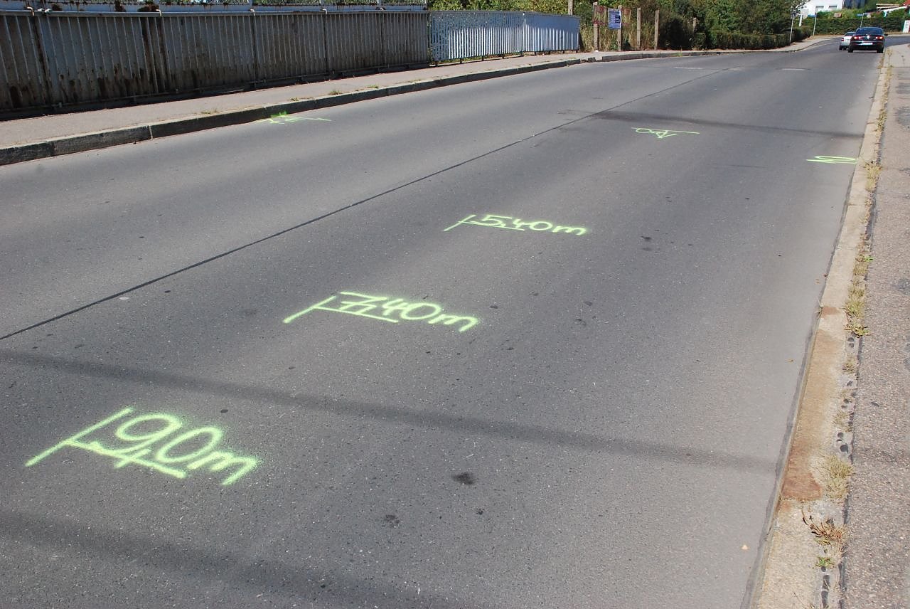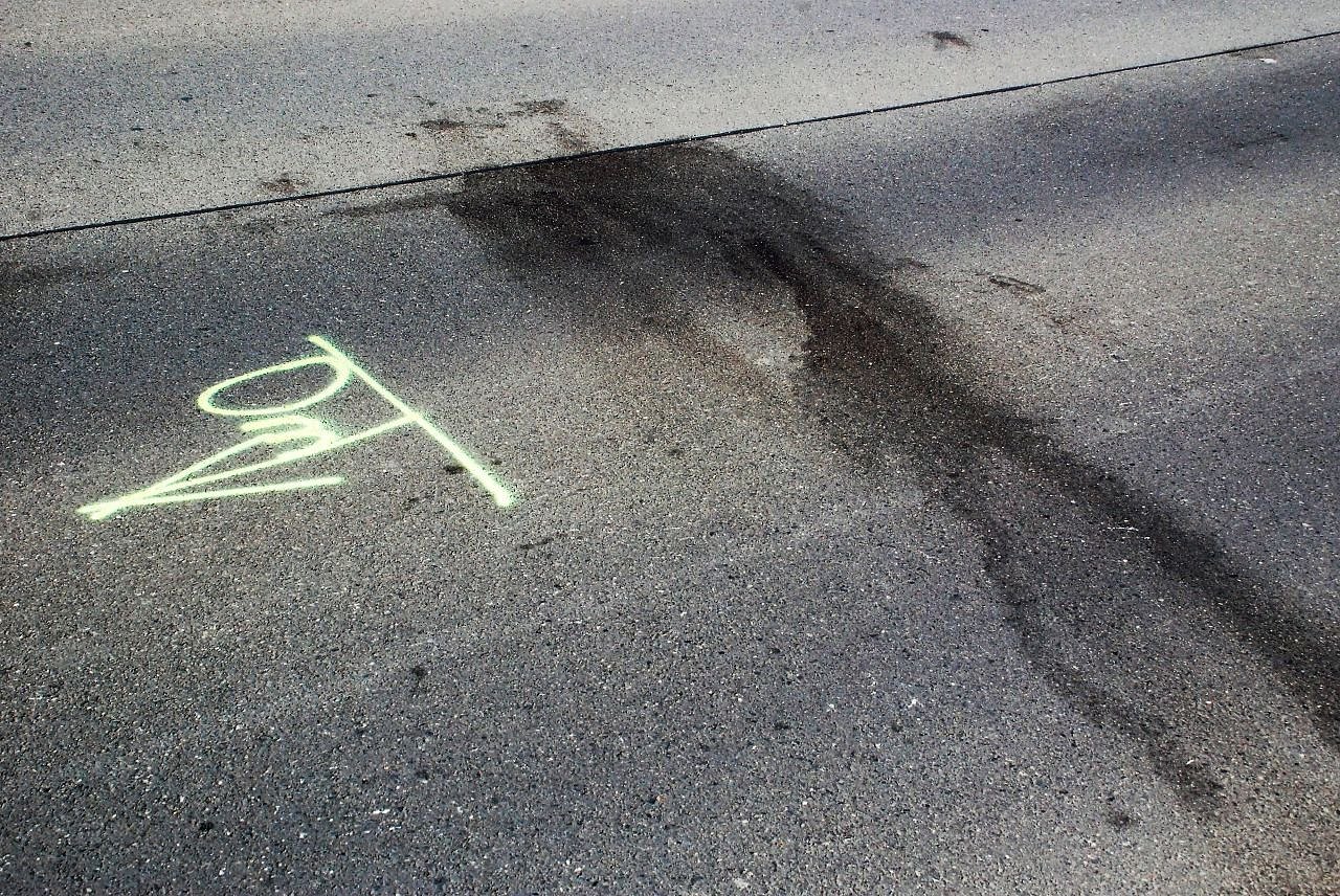 Die Polizei markierte die Stellen, wo das Opfer vom Wagen des Täters mitgeschleift wurde. (Foto: Jochen Miche)
