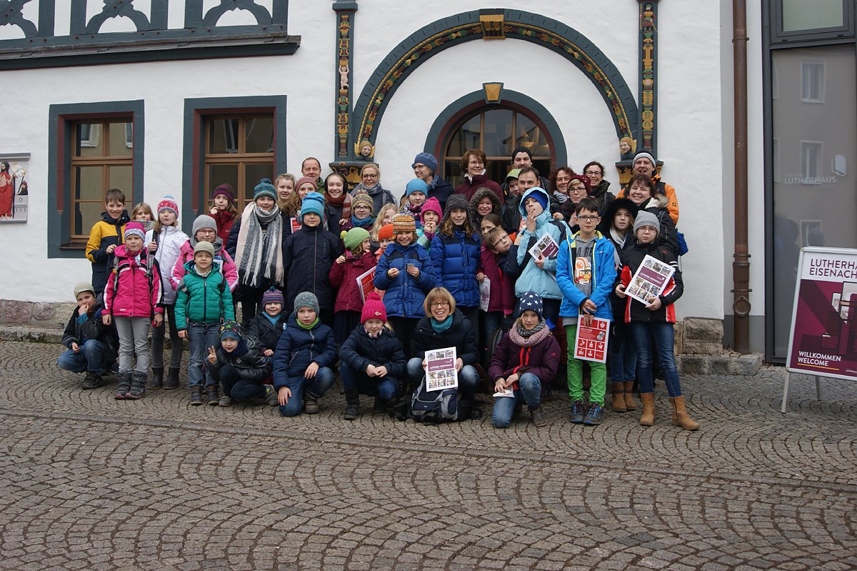 Musikstudenten in Dresden haben das Musical vor ca. sechs Jahren komponiert. Dieses Projekt des ev. Kirchenkreises Mühlhausen wurde aufgrund des 500jährigen Reformationsjubiläums ins Leben gerufen. Kreiskantor Oliver Stechbart öffnete dieses Angebot über den bestehenden Mühlhäuser Kinderchor hinaus und so meldeten sich über 50 TeilnehmerInnen an, die am vergangenen Wochenende passender Weise im Junker-Jörg-Haus Eisenach untergebracht waren und das Musical mit seinen Liedern und Textrollen einstudiert haben. Dazu gehörte auch ein Besuch der Wartburg und des Luther-Museums.