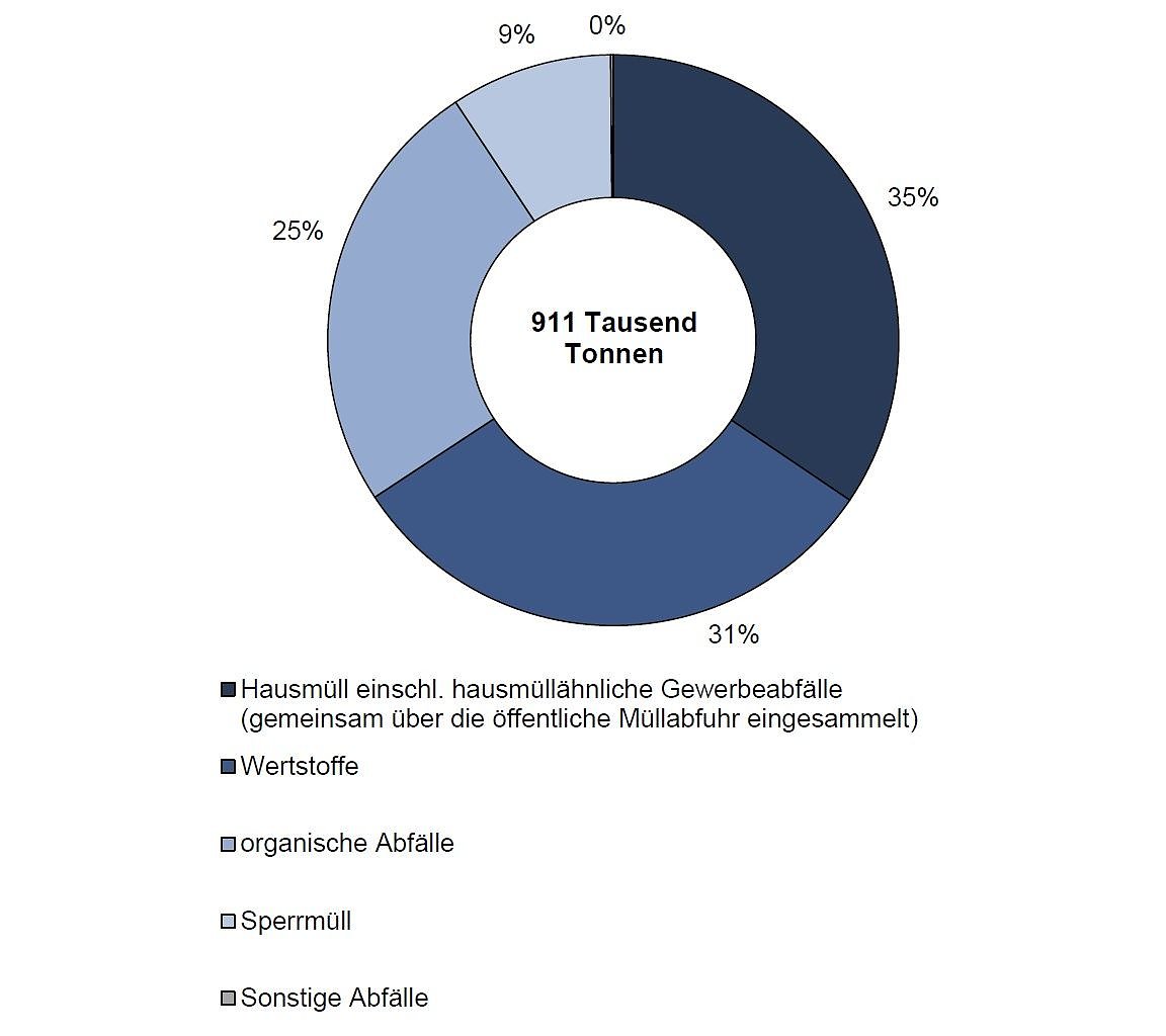 Mehr als die Hälfte (56 Prozent) der Haushaltsabfälle wurden im Jahr 2016 getrennt erfasst (512.000 Tonnen). Davon waren 285 Tausend Tonnen Wertstoffe (wie z.B. Papier, gemischte Verpackungen, Glas) und 227.000 Tonnen organische Abfälle. Die Menge der getrennt gesammelten organischen Abfälle hat sich gegenüber dem Vorjahr um knapp 25 Tausend Tonnen erhöht (+ 12,2 Prozent).