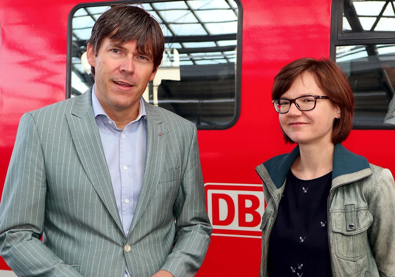 Aktuelle Abo-Kampagne Thüringen - Dr. Wolfgang Weinhold, Vorsitzender der Regionalleitung DB Regio Südost und Juliane Große, Projektentwicklerin aus Mühlhausen Foto: Deutsche Bahn AG/Jörg Bönisch