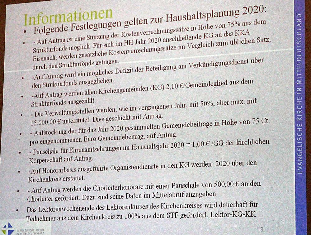 Zuerst ging es um den Haushaltsjahr 2020, mit dem Thema Haushalts- sowie Stellenplan und die Kirchenkreiskollekte für 2020.