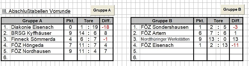 Gespielt wurde in zwei Gruppen. Die Spielzeit war 10 Minuten.