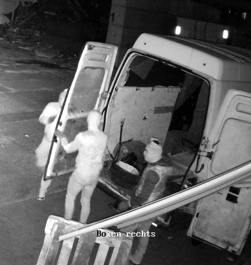 Sie stahlen Buntmetall und Kupferkabel im Wert von mindestens 10000 Euro. Die Kriminalpolizei konnte die Videoüberwachung sichern. Wer erkennt den genutzten Renault Master oder wo ist dieses Fahrzeug, möglicherweise vor oder nach der Tat aufgefallen?