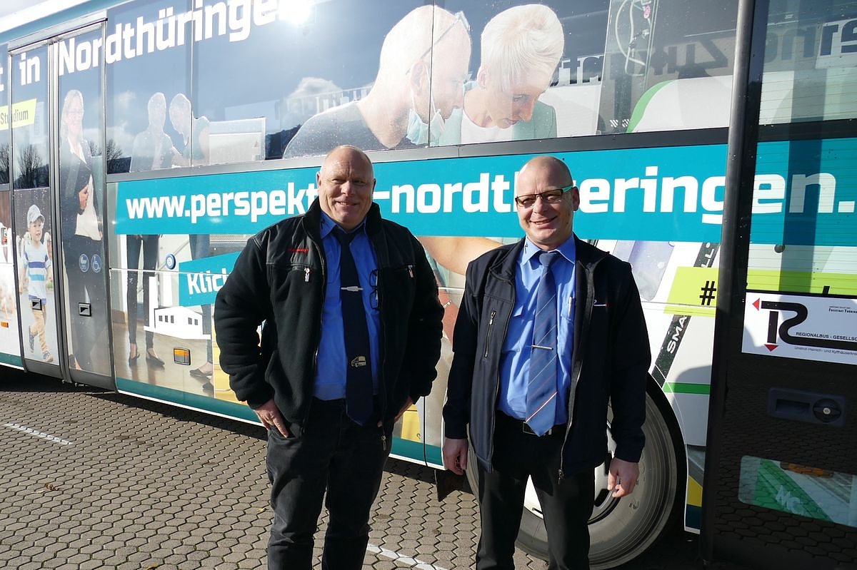 Herr Kirchner und Herr Becker, die bei jeder Fahrt 30-35 Fahrgäste auf der landesbedeutsamen Linie mitnehmen.
