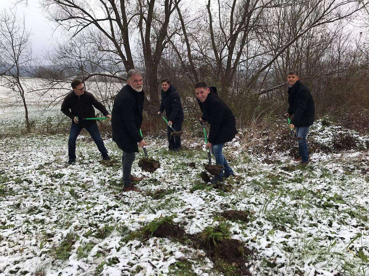 Spatenstich im Neuschnee
