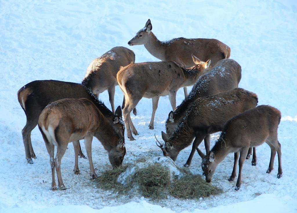 Rotwild im wärmenden Winterkleid im Thüringer Forstamt Frauenwald (Foto: ThüringenForst, Dr. Horst Sproßmann)