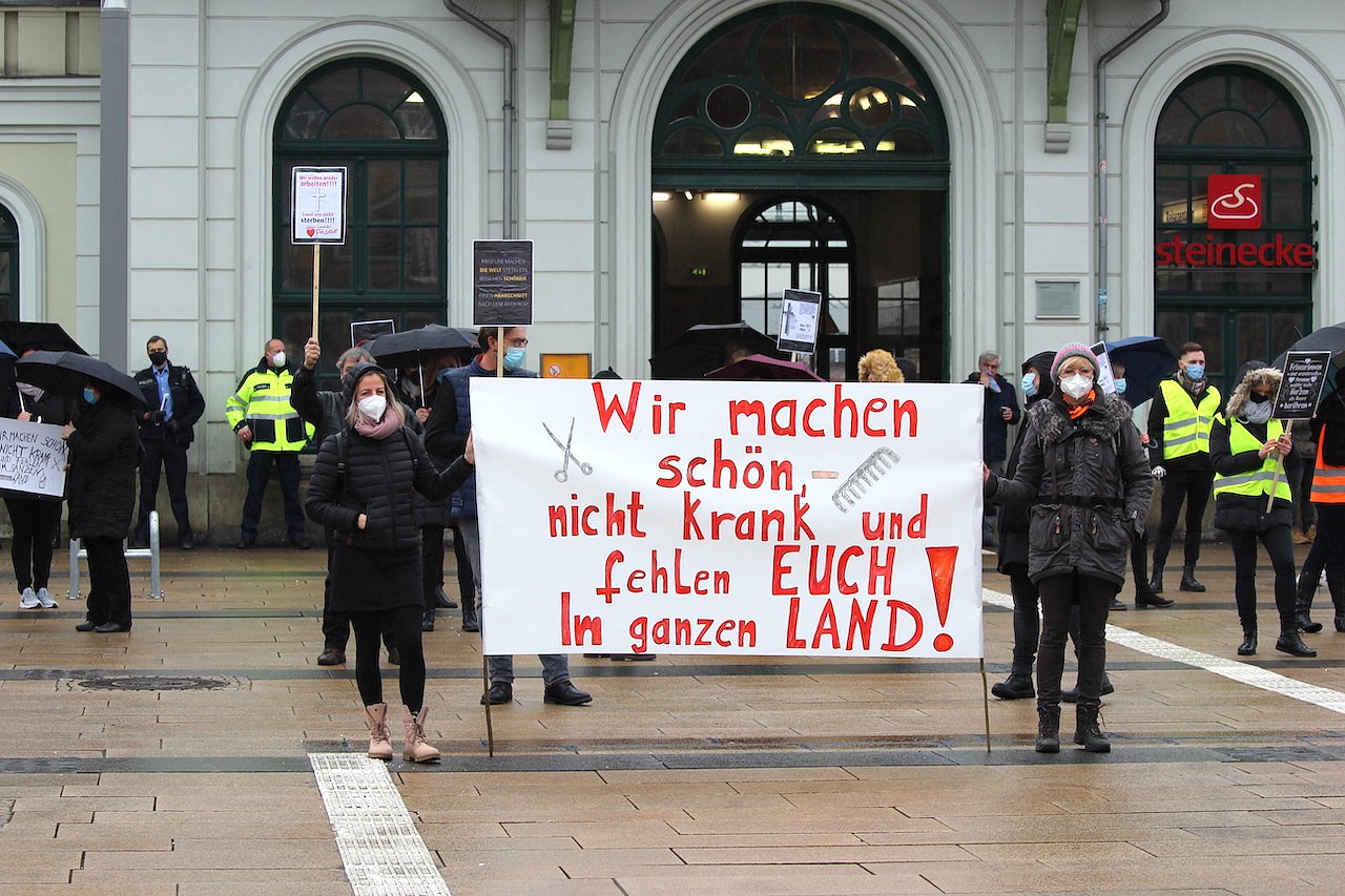 Proteste gegen Schließung der Friseure und auch Fußpflege richtig