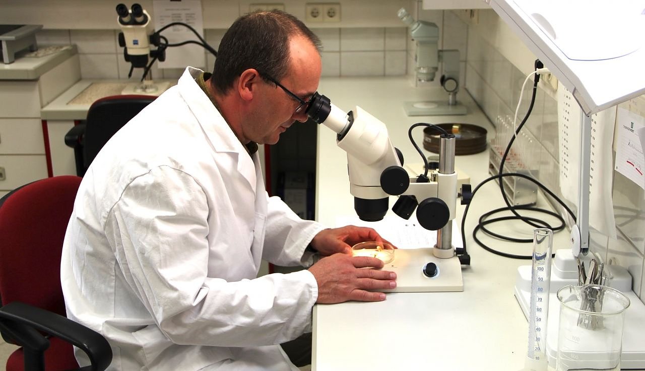 Förster in ungewohnter Umgebung: Statt grünem Loden trägt ThüringenForst-Waldschutzexperte Mathias Stürtz einen weißen Laborkittel (Foto: ThüringenForst)