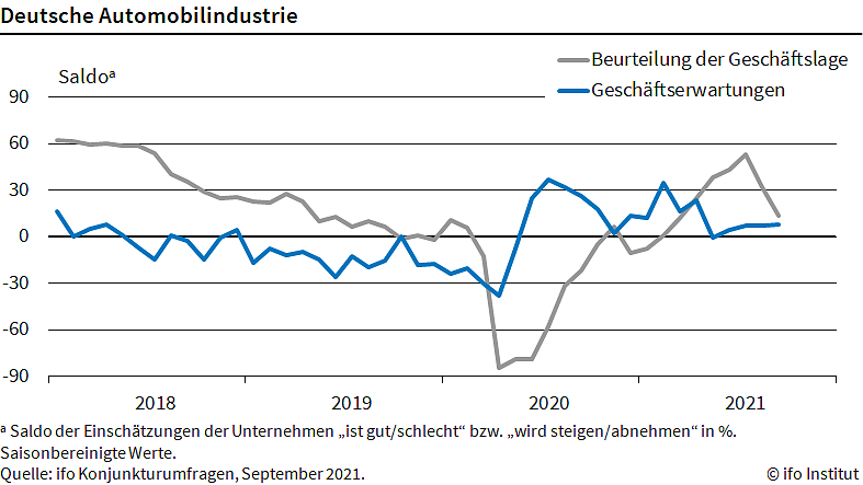 Die Lage der deutschen Autohersteller und ihrer Zulieferer hat sich im September empfindlich abgekühlt. „Aktuelle Zahlen zeigen, dass die Autobranche die am stärksten von Lieferengpässen mit Vorprodukten betroffene Branche ist“, sagt Oliver Falck, der Leiter des ifo Zentrums für Industrieökonomik und neue Technologien...