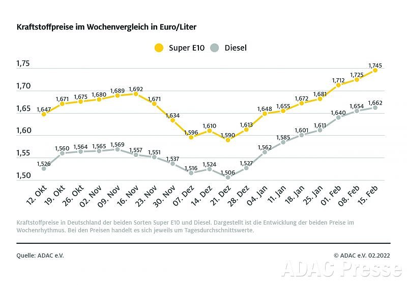 Laut ADAC hat der Anstieg des Rohölpreises gegenüber der Vorwoche zur Verteuerung bei den Kraftstoffen geführt. Ein Barrel Rohöl der Sorte Brent kostet derzeit rund 93 US-Dollar, das sind rund zwei Dollar mehr als in der Vorwoche. Eine der Ursachen für den Preisanstieg war die Unsicherheit auf dem Rohölmarkt angesichts des Konflikts zwischen der Ukraine und Russland. Der ADAC erwartet, dass eine mögliche Entspannung der Krise und ein Rückgang des Ölpreises auch unverzüglich durch niedrigere Spritpreise an die Autofahrer weitergegeben wird.