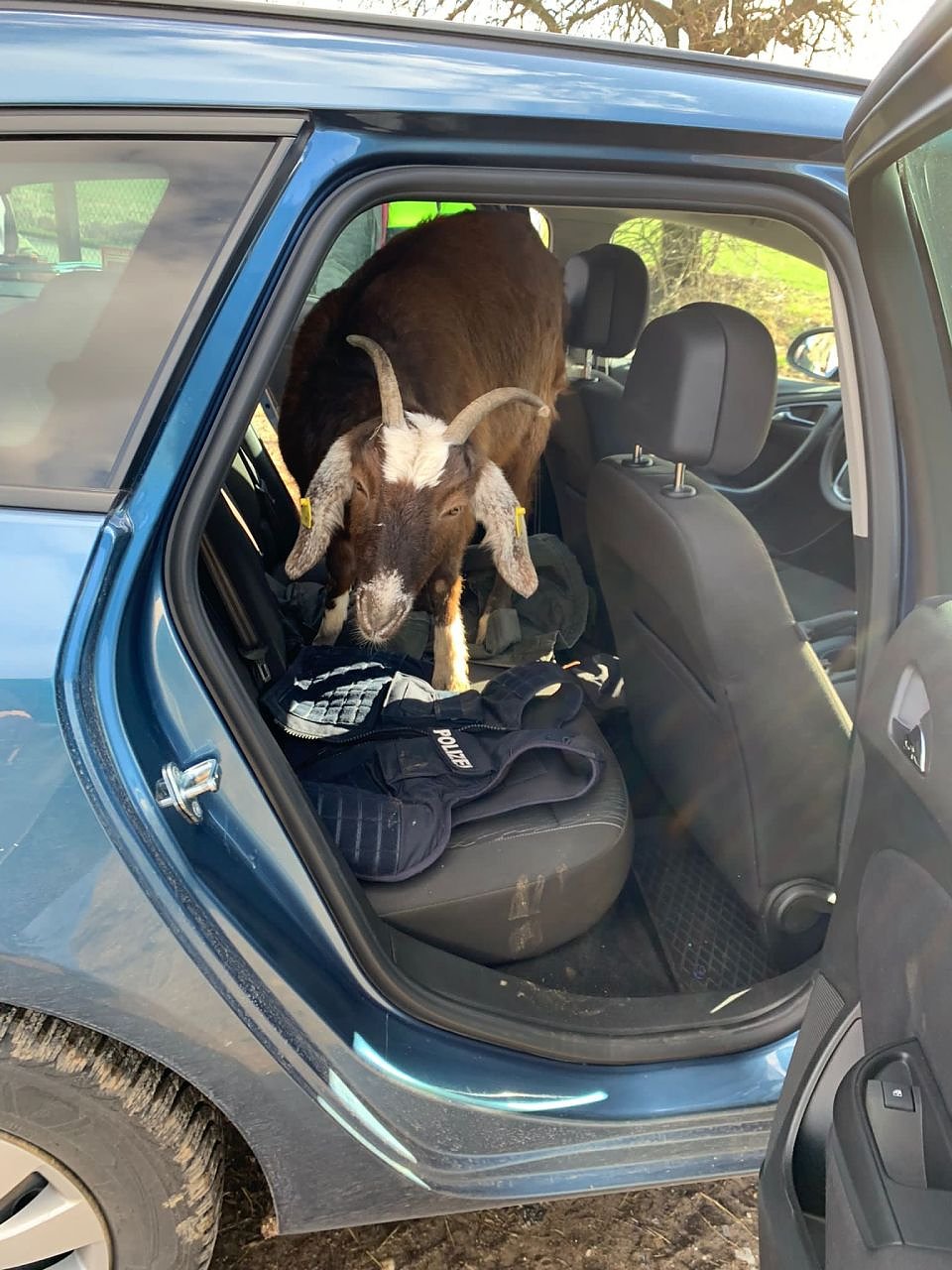 Ein Ziegenbock machte es sich auf dem Rücksitz des zivilen Fahrzeuges bequem. Er hatte wahrscheinlich an eine Spritztour gedacht, denn nach Aussage seines Herrchens fährt der Bock gern Auto. Diesen Wunsch konnten ihm die Kriminalisten leider nicht erfüllen. Fast freiwillig, verließ das Tier das Einsatzfahrzeug.
