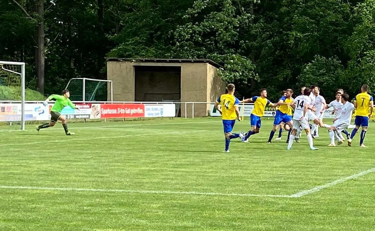 Dabei startete man überlegen, suchte erfolgreich den Weg nach vorn und kam zu besten Chancen. Fiß bediente Hermes auf Außen, dessen Flanke nahm Fernschild volley – um Zentimeter ging der Ball drüber (10.). Auch Fingers Knaller konnte Keeper Oertel zur Ecke lenken (12.). Dann Geschenk Nummer eins, Geißler spielt den Ball in die Füße des vor Spielbeginn verabschiedeten Petrik, der sagt Danke und schiebt den Ball ins Eck zum 1:0 (16.). Da ließ sich sein Gegenüber zwei Minuten später nicht zweimal bitten, er schießt den anlaufenden Fiß an und der Ball kullert zum Ausgleich ins Tor (18.).