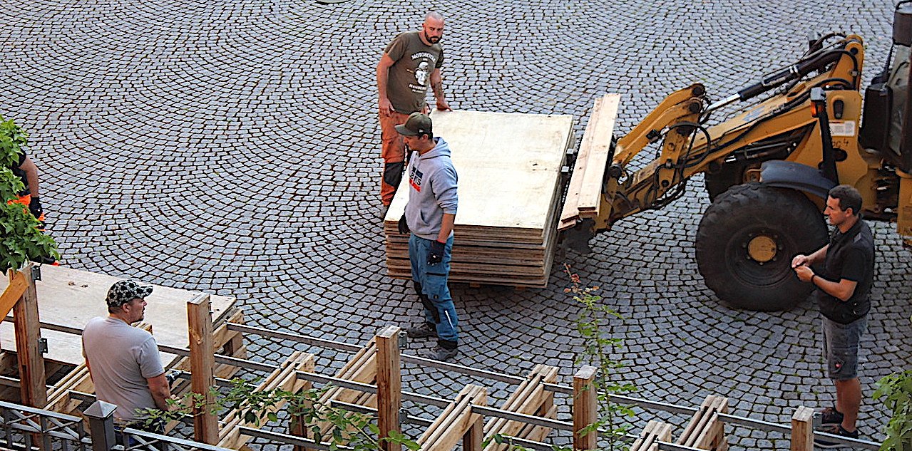 Lang hat es gedauert, gefühlt ein halbes Mittelalter, dass die Langensalzaer nicht zu ihrem großen Stadtfest einladen konnten. Doch seit heute Morgen wird gehämmert und gebohrt, gehoben und hingestellt. Am Samstag um 14 Uhr geht es los …