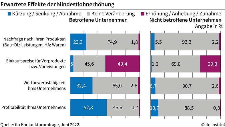 Zur Anhebung des Mindestlohnes und den geplanten Reaktionen der Unternehmen darauf stellte das ifo im Juni 2022 Sonderfragen in den Konjunkturumfragen. Sie wurden von 6 900 Unternehmen beantwortet.