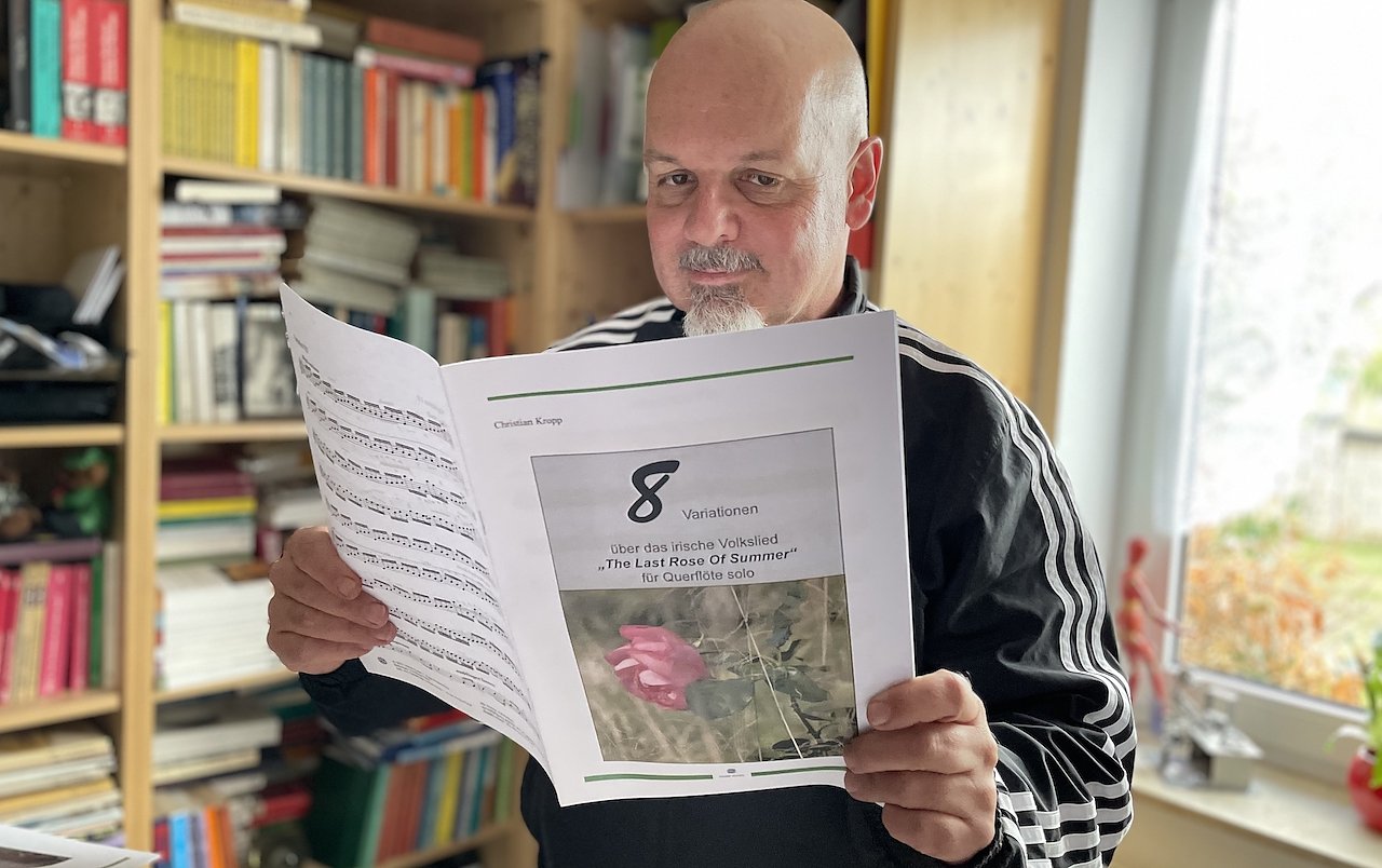 Nun folgt als neues Stück im Verlag Daniel Kunert ein kammermusikalisches Werk, ein Zyklus von Variationen für Querflöte solo. Kropp hat das irische Volkslied The last Rose of Summer als Thema diesem Zyklus zugrundgelegt. Anfang des 19. Jahrhunderts war dieses Lied ein regelrechter Schlager, den zahlreiche bekannte Komponisten vertont haben. Das neue Werk beginnt im klassischen Stil, verwendet aber auch moderne Spieltechniken, wie Doppelgriffe, Flageoletttöne oder Flatterzunge.