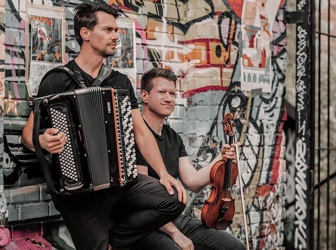 Am Freitag präsentieren Almir Meskovic (Akkordeon) und Daniel Lazar (Violine) als die Balkan- Virtuosen schlechthin ihre unverwechselbare musikalische Mischung – von Balkanrhythmen über Mozart bis zu Gypsy und Swing.