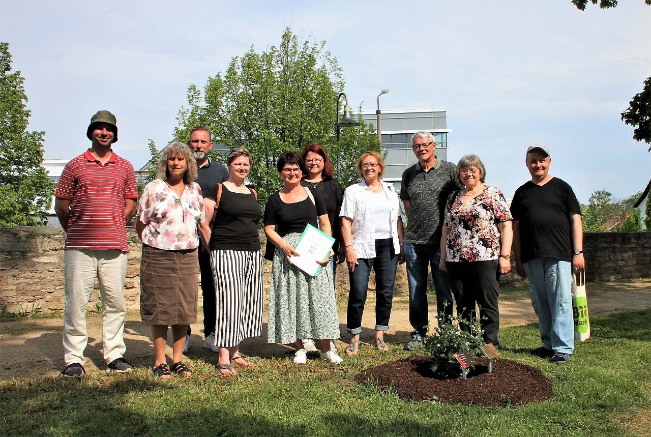 Zusammen mit Bürgermeister Matthias Reinz, der die Verdienste der bereits im vergangenen Herbst verstorbenen Stadtbilderklärerin würdigte, wurde die Neupflanzung angegossen.