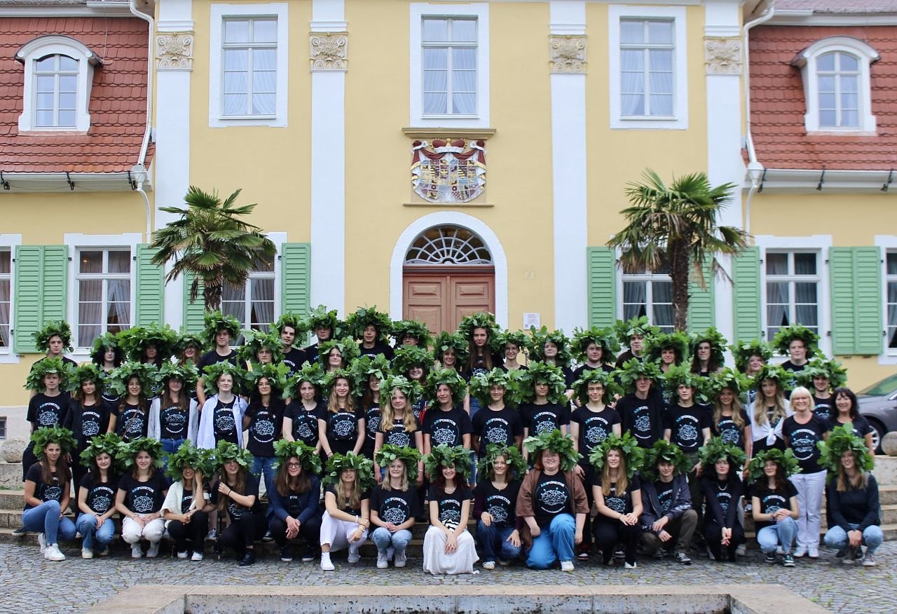 Abi 2023 - Schülerinnen und Schüler des Salza Gymnasiums Bon Bad Langensalza vor dem Friederikenschlösschen (Foto: Eva Maria Wiegand)