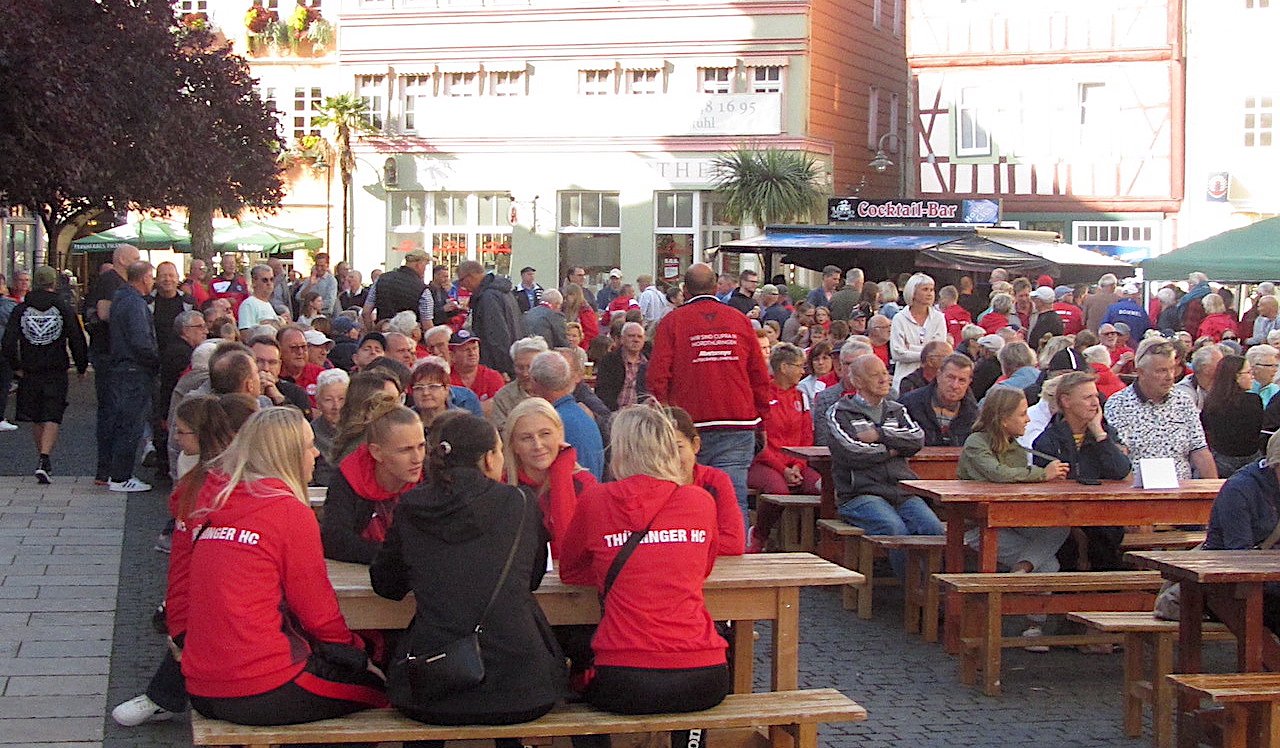Volksfeststimmung auf dem Neumarkt mit Bratwurst und Bier und viel guter Laune in roten Trikots. Gestern Nachmittag stellte der Thüringer Handballcub den Fans das neue Team vor, das bestenfalls den Deutschen Meistertitel holen soll. Doch es gab auch Misstöne …
