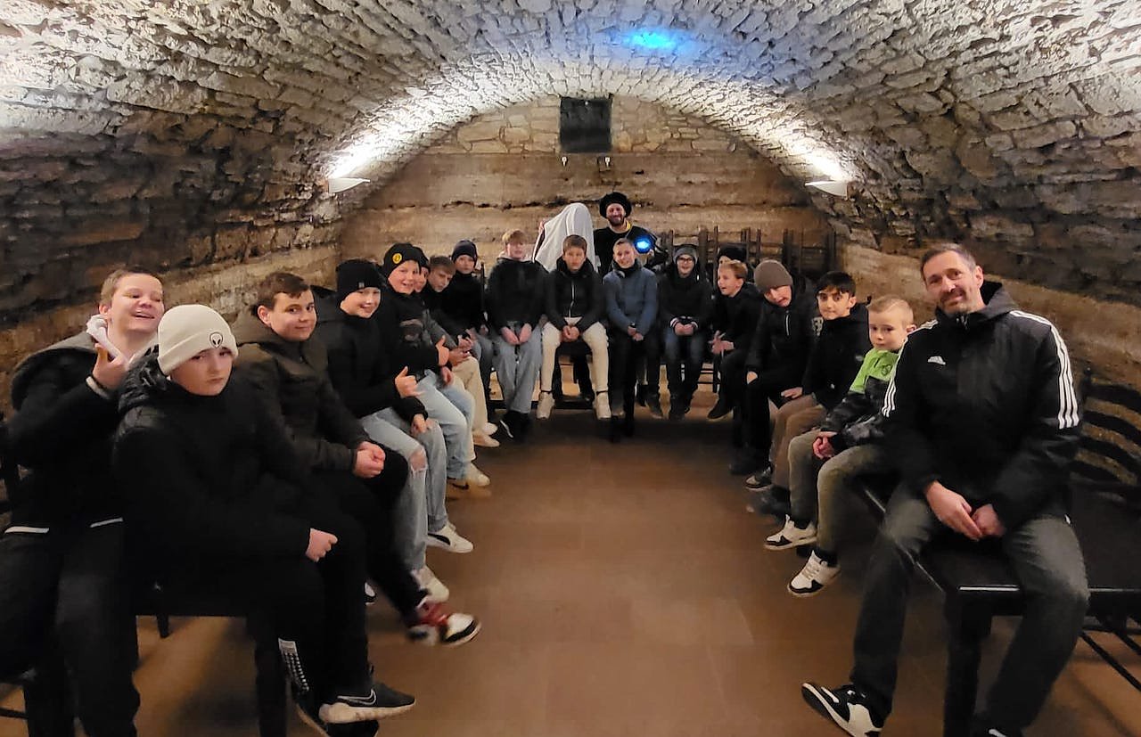 Im Keller unter dem Geschäft von Sport Schenk wurde eine Runde gekickt. Das ist ansonsten streng verboten, aber kaputt schießen konnten die Jungs da unten nichts. Stattdessen wurde ein kleines Quiz über die Geschichte der Stadt veranstaltet und für eine richtige Antwort gab es eine Brause für die Jungs. Anschließend ging es in die Gewölbe unter dem Neumarkt und hier wurde mit Taschenlampen nach dem Kellergespenst gesucht.
