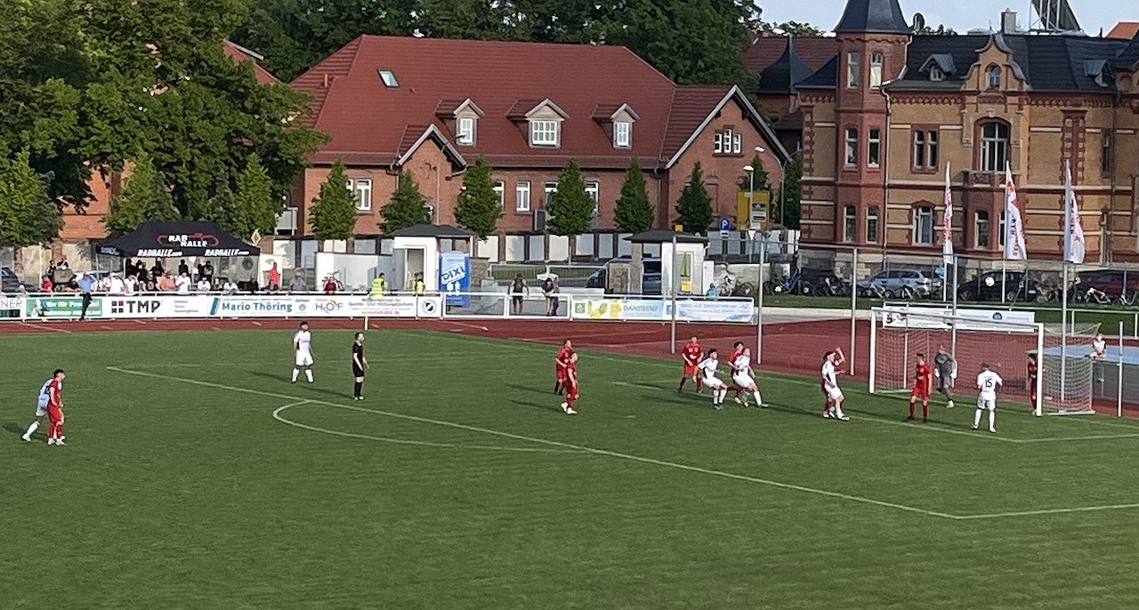 Autor: redBeide Torschützen des 1:1-Hinspiels standen nicht auf dem Feld, so dass es auf andere Protagonisten ankam. Der erste Durchgang entwickelte sich nach 20-minütigem Vorgeplänkel plötzlich zu einem Schlagabtausch. Sierras Schuss wurde zunächst geblockt, dann traf Schmidt für Union aus einem Meter ins Tor, stand dabei aber im Abseits. Keine Minute später zirkelte Mühlhausens Routinier den Ball knapp über den Kasten und Preußen pustete ordentlich durch. Die Antwort auf die Unioner Drangphase gab das Kurstädter Team direkt mit dem 1:0. Fabrice Harnisch spielte einen weiten Ball in die Spitze und dieses Mal funktionierte die Abseitsfalle der Gäste nicht. Niklas Wiesner blieb vor Müller ganz cool und schlenzte die Kugel oben links ins Netz. Kaum war der Jubel beendet, tauchte Fränkel frei vor Preußens Keeper auf und Julien Patzer zeigte eine Mega-Parade. Das war super wichtig für die Hausherren, denn der direkte Ausgleich wäre ein mächtiger Rückschlag für die Preußen gewesen. Stattdessen erhöhte Nando Fernschild beinahe für die Elf aus der Rosenstadt, traf aber nur den Außenpfosten. Bis zur Halbzeitpause neutralisierte sich die Partie, der eine oder andere Standard auf beiden Seiten brachte nichts ein.
