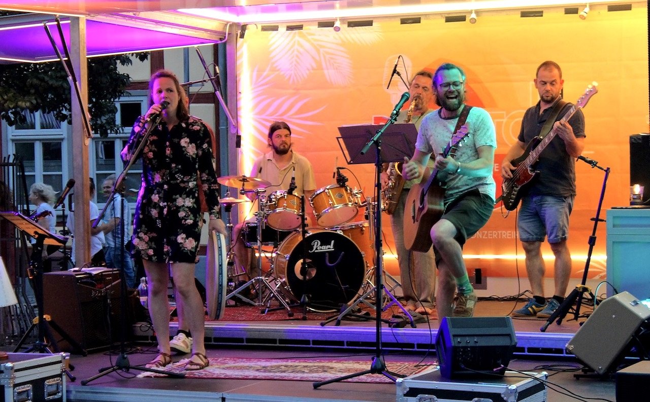 Autor: redHunderte Menschen waren in die Innenstadt auf den Kornmarkt geströmt, um bei schönstem Sommerwetter vor dem neuen indischen Restaurant Punjabi Bad'Sha im ehemaligen "Zum Löwen", dem Restaurant K3 und dem Café "Klein und Mein" den Längen der Lokalmatadoren CAROSH BENDT zu lauschen und dabei den Tag mit einem leckeren Essen, dem einen oder anderen Getränk und netten Gesprächen mit Freunden, Bekannten und Nachbarn ausklingen zu lassen.
