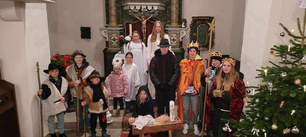Die Andacht am Heiligen Abend wird um 15.30 Uhr in der Kirche gefeiert – mit Krippenspiel natürlich.