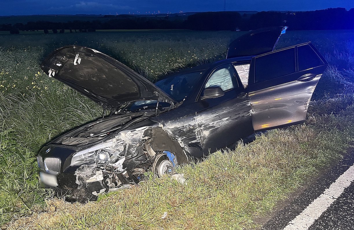 Gegen 20:30 Uhr befuhr ein 51-jähriger BMW-Fahrer aus Ebeleben die Bundesstraße in Richtung Gundersleben. Ausgangs einer Rechtskurve kam der Fahrer aus ungeklärter Ursache nach links von der Fahrbahn ab, prallte gegen die Leitplanke und in der weiteren Folge blieb er nach ca. 150 m rechts im Straßengraben liegen. Die beiden Fahrzeuginsassen blieben unverletzt. Der Sachschaden wird mit rund 35.000 Euro beziffert.