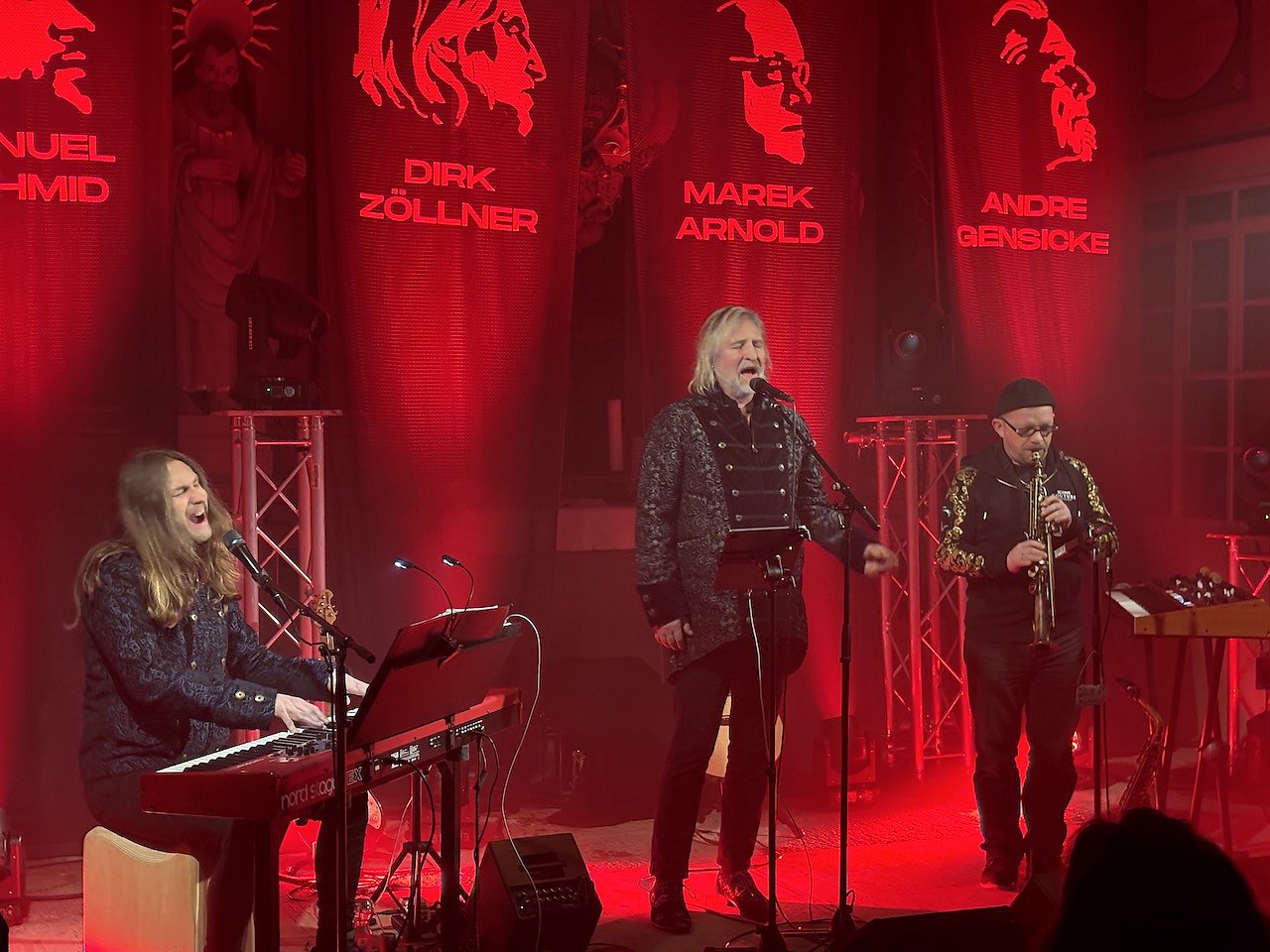 Die zwei Sänger (neben Dirk Zöllner bestach auch der Sterncombo-Pianist Manuel Schmid) und ihre unterstützenden Musiker trafen zudem ganz offensichtlich genau den musikalischen Geschmack ihrer Zuhörer. Und so folgten in einer beeindruckenden Zeitreise die getragenen und sehnsuchtsvollen Melodien von Lift, Karat, Holger Biege, Reinhard Lakomy oder der Horst Krüger Bigband aufeinander, vorgetragen in höchster Qualität von einer gut eingespielten Kapelle.