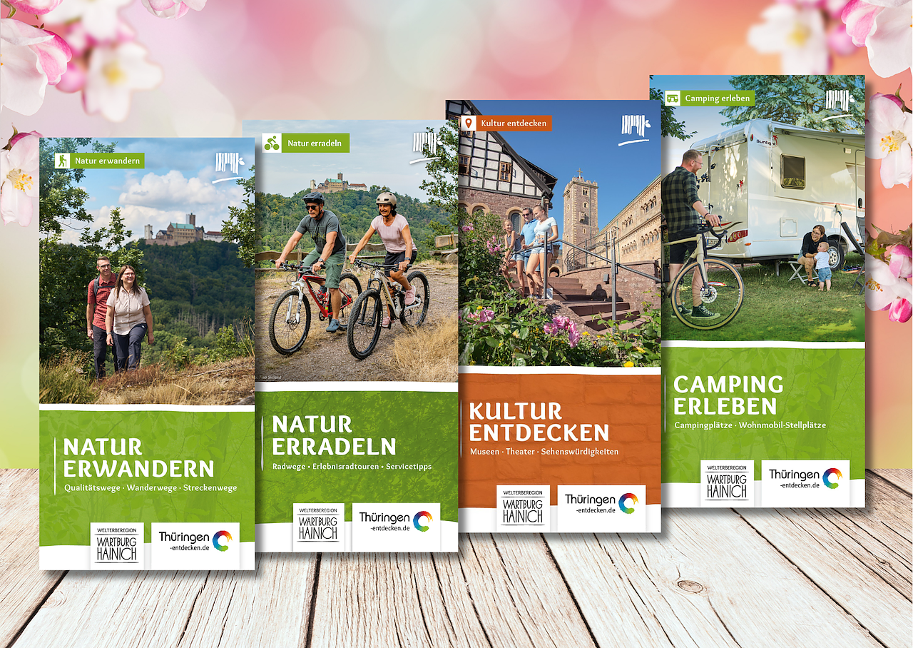 Der Campingmarkt boomt. Passend dazu präsentiert der Welterberegion Wartburg Hainich die neue Broschüre Camping erleben. Pünktlich zum Start der neuen Tourismussaison gesellen sich außerdem die Broschüren Kultur entdecken, Natur erradeln und Natur erwandern dazu...