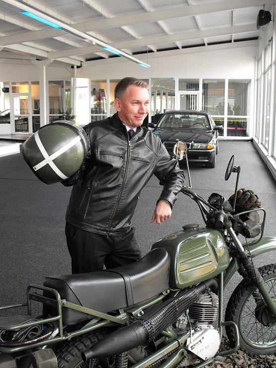 Autonarr Oliver Wönnmann mit seinem Motorrad (Foto: Angelo Glashagel)
