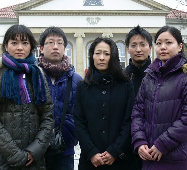 Von links: Fumiko Okusawa, Youich Murakami, Kuniko Kobayashi, Masanori Kobayashi, Yuri Hamano – fünf junge Leute aus Japan, die derzeit in Nordhausen wohnen. Fumiko Okusawa und Yuri Hamano sind Tänzerinnen in der Ballettkompanie des Theaters, Yoichi Murakami ist Hornpraktikant im Loh-Orchester. Klarinettist Masanori Kobayashi lebt mit seiner Frau Kuniko und seinen drei Kindern schon seit vielen Jahren in Nordhausen