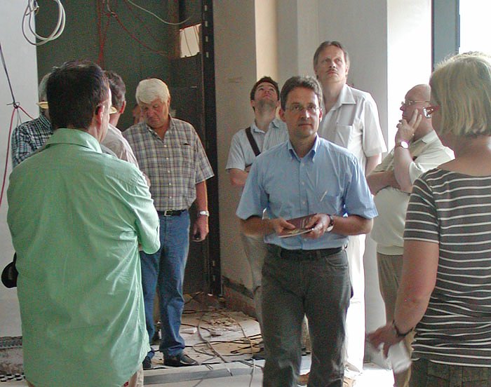 Autor: khhDie mehr als zwanzigköpfige Gruppe wurde am 7. Juni 2011 auf der Baustelle an der Nordhäuser Kreuzung vom Geschäftsführer der "Wippertal" WBG mbH Eckhard Wehmeier und dem verantwortlichen Architekten Karsten Schmidt (AIG) herzlich willkommen geheißen. Dort wurden sie über das Zustandekommen des Projektes mit der Landesmusikakademie sowie über Einzelheiten der Baumaßnahme und Förderungen durch Bund, Land und Kommune informiert.